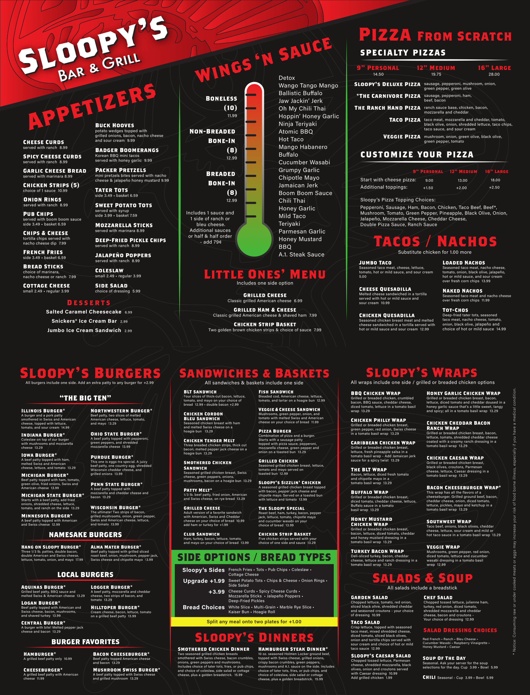 Fan favortie burgers, Homeade pizza, and fresh hot wings. Were sure to have something for the whole family!